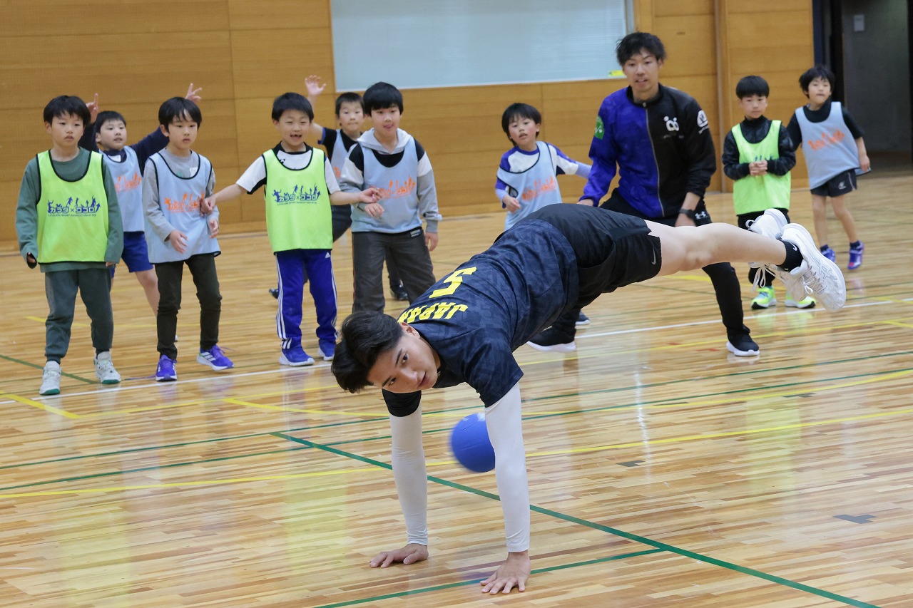 「ドッジボール上達教室」では、ドッジボール日本代表の中田輝選手、田鍋成美選手、坂場巧海選手を講師に迎え、基礎練習から実践的な動きまで、楽しみながら技術の向上を目指しました。