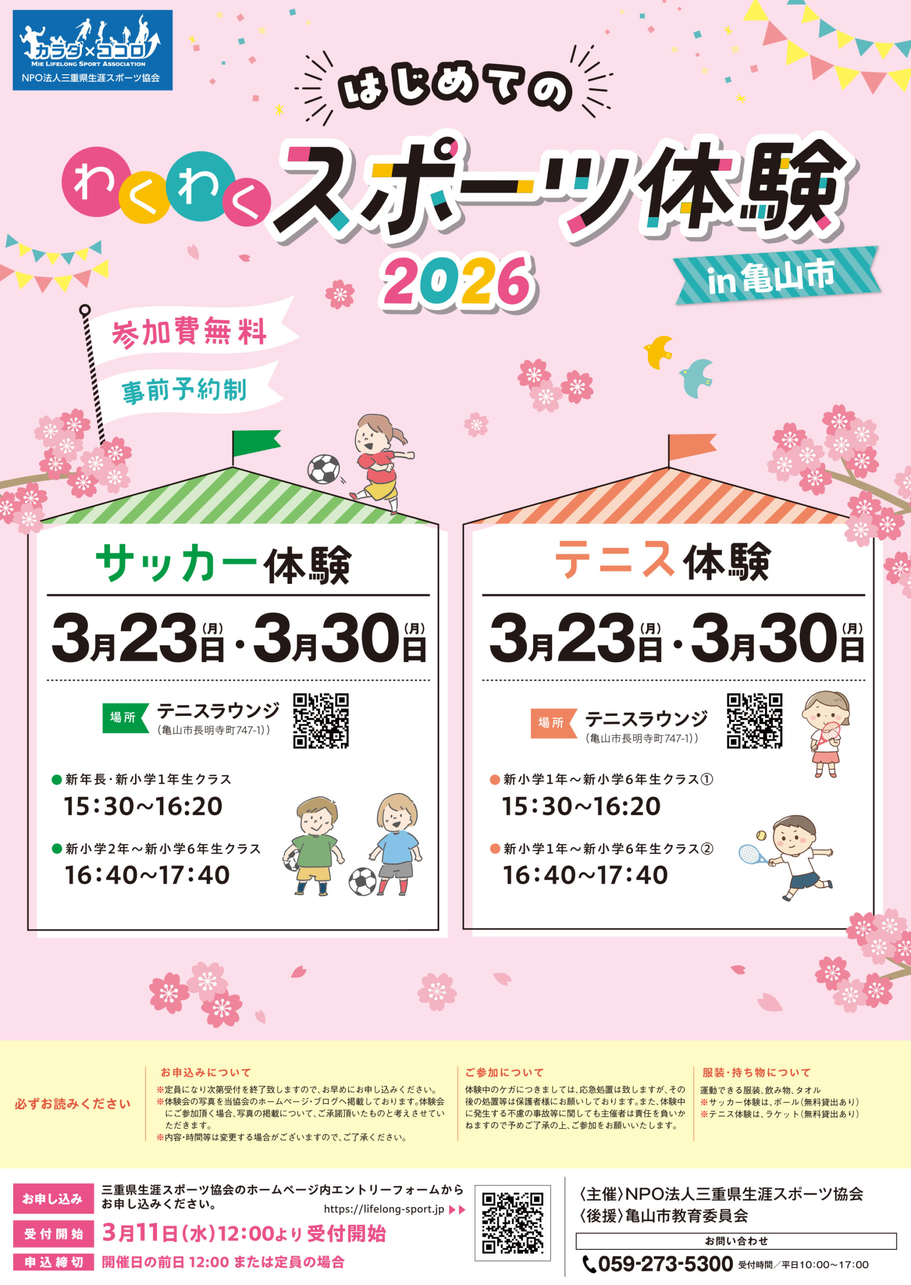 Event informationイベント等申込み HOME イベント等申込み 【3/23・3/30】はじめてのわくわくスポーツ体験2026 ㏌ 亀山市 2026.03.11 【3/23・3/30】はじめてのわくわくスポーツ体験2026 ㏌ 亀山市 申し込む 一覧に戻る