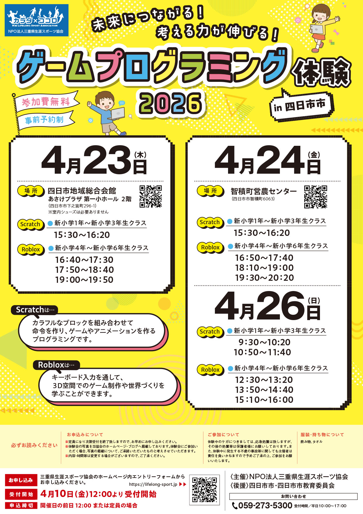Event informationイベント等申込み HOME イベント等申込み 【4/23~】ゲームプログラミング体験2026in四日市市 2026.04.10 【4/23~】ゲームプログラミング体験2026in四日市市 申し込む 一覧に戻る