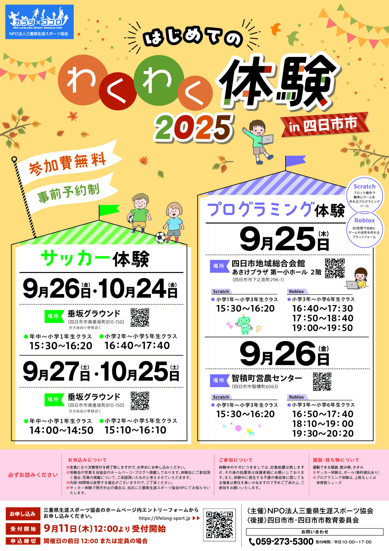 Event informationイベント等申込み HOME イベント等申込み 【9/25~】はじめてのわくわく体験2025 in四日市 2025.09.11 【9/25~】はじめてのわくわく体験2025 in四日市 申し込む 一覧に戻る